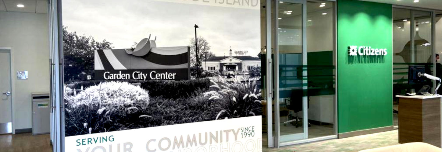 As part of their rebranding efforts, Citizens Financial Group asked us to help redesign one of their neighborhood flagship branches to bring a refreshed exterior to the Garden City Center shopping complex.